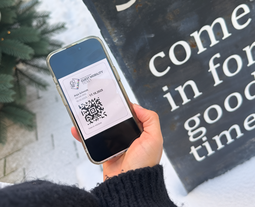Als Gast im the salt erhältst du das kostenlose Guest Mobility Ticket, mit dem du dich während deines Aufenthaltes kostenfrei mit den öffentlichen Verkehrsmitteln des Salzburger Landes fortbewegen kannst.